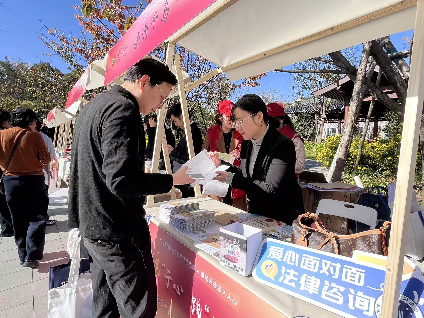 活动现场,“法润千岛·阳光护苗”的未成年人保护法问答专区前人头攒动,成为最受欢迎的 “摊位” 之一。公益律师们结合未成年人监护责任、校园安全保障、网络保护等多个热点领域,将抽象的法律条文转化为通俗易懂的问答题目。未成年人们踊跃参与答题,时而驻足思考,时而相互探讨,几位律师也耐心细致地逐一解答市民提出的各类其他法律问题,引导大家树立尊法学法守法用法的意识。