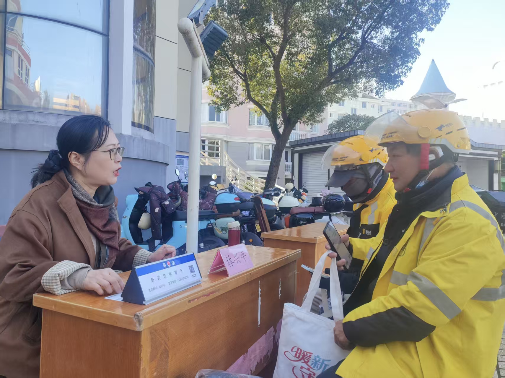 与此同时,林律师特别关注到场的外卖骑手、快递小哥等新业态劳动者。她精准聚焦该群体在劳动用工、交通事故、平台算法管理等方面的法律风险,围绕“劳动关系界定”“保险理赔实务”“维权证据固定”等核心议题进行专业清晰的“以案释法”,并引导大家扫码获取本所精心整理的“新业态劳动者权益保护电子资料包”,为其后续依法维权提供实用工具与明确指引,获得参与者一致好评。