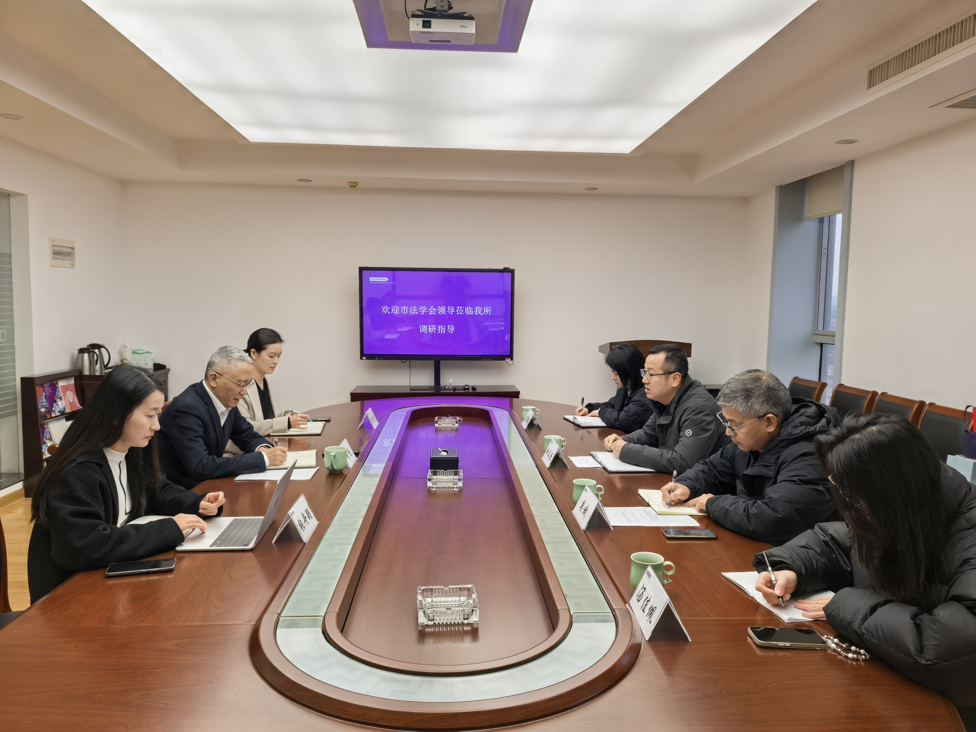 座谈会上,董杰主任首先对姚文杰副书记一行的到来表示热烈欢迎,并介绍了全市律师行业在聚焦公益服务、聚力人才队伍建设等方面的成效。同时就大成舟山分所服务地方经济、重点推进的工作及常态化工作情况进行了详细汇报。董杰主任强调,律师是全面依法治国的重要力量,与法学会在目标、职能上高度契合,拥有合作发展的坚实基础。